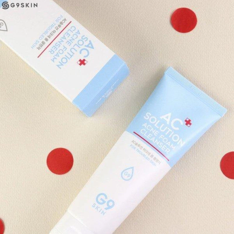 The G9SKIN AC Solution ACNE foam cleanser is aΒ gentle foaming cleanser for troubled skin. G9 Skinβs gentle foaming cleanse has been specially developed for troubled skin. Perfect for sensitive skin, the cleanser contains 0.5% salicylic acid to remove skin sebum and dead skin cell from pores and cleanses to reveal a healthy complexion. Made from plant ingredients to help lower stimulation and soothe troubled skin.