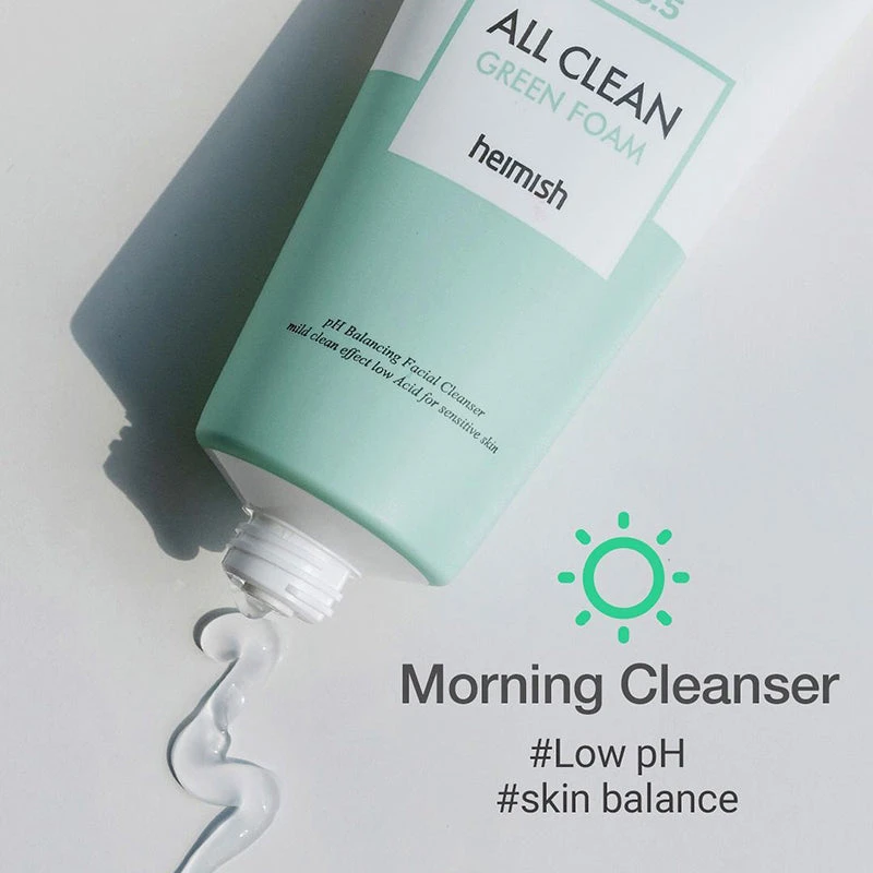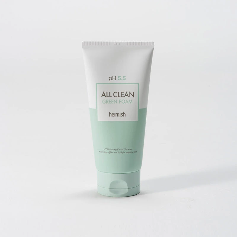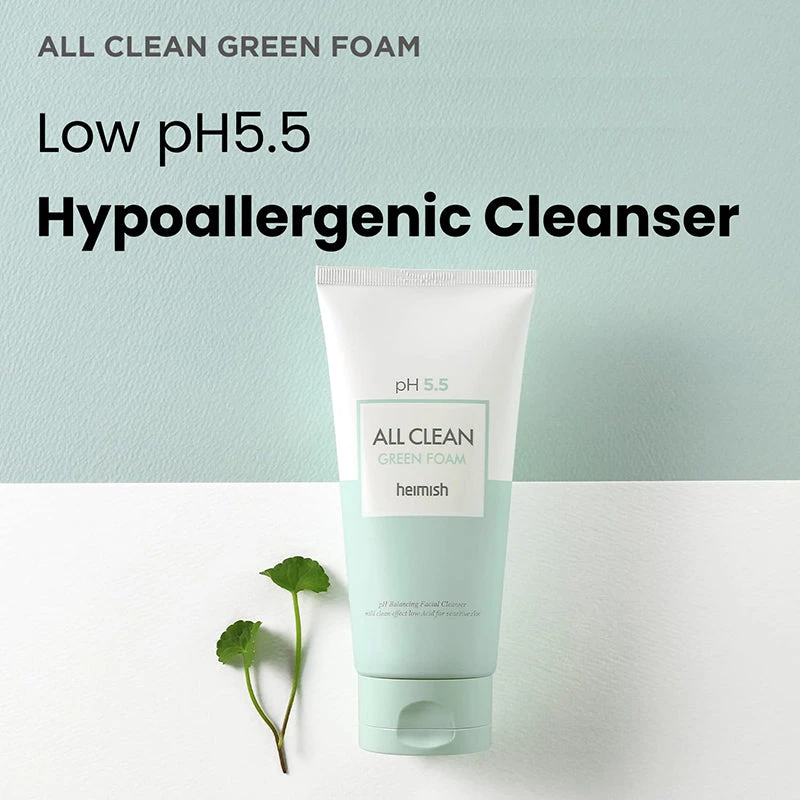 The Heimish All Clean Green Foam is a gentle cleanser for every day with the pH of about 5.5. With its gel-like texture this cleanser maintains the optimal pH balance while effectively removing impurities. Formulated with Centella Asiatica and Witch Hazel, widely known for their healing and soothing properties.