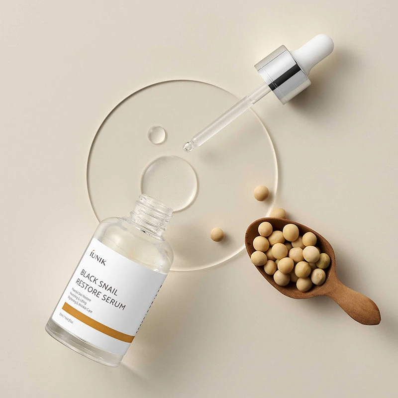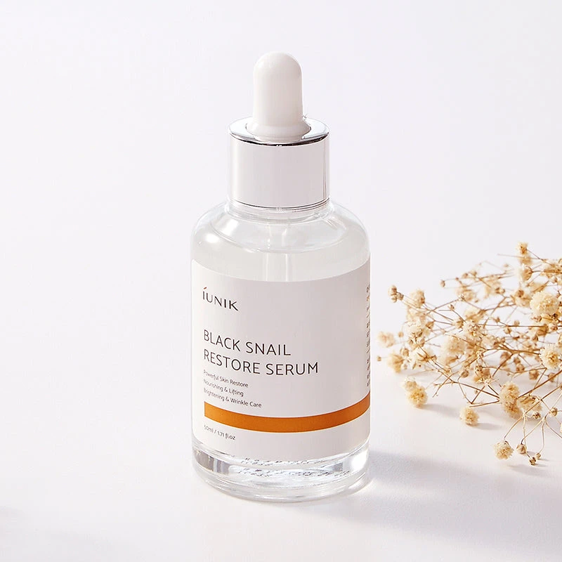 The iUNIK Black Snail Restore Serum is an antiaging serum that protects the skin against wrinkles, dullness, and tiredness. Enriched with 70% of the black snail extract to nourish and restore supple and smooth skin, centella asiatica to soothe and regenerate, and 5 black superfoods (black beans, black sesame, black rice, kelp, eggplants) to infuse the skin with high antioxidant benefits.