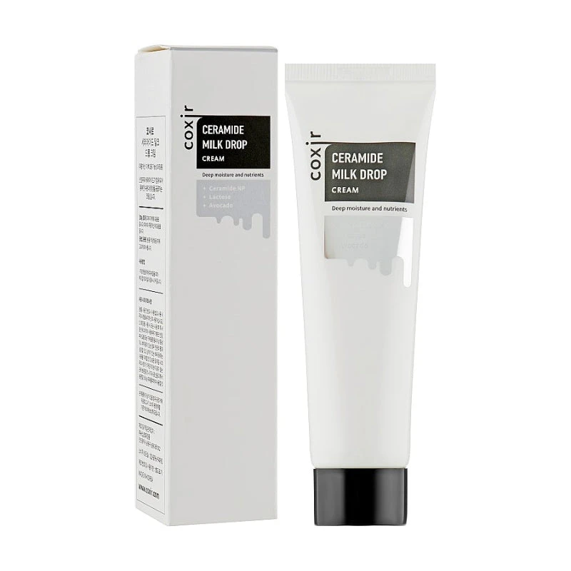 The Coxir Ceramide Milk Drop Cream is an innovative face cream. The formula bursts into tiny water droplets when applied, providing instant hydration and nutrients to dry skin. It contains Ceramide, Lactose and Avocado which leave skin moist and glowy.