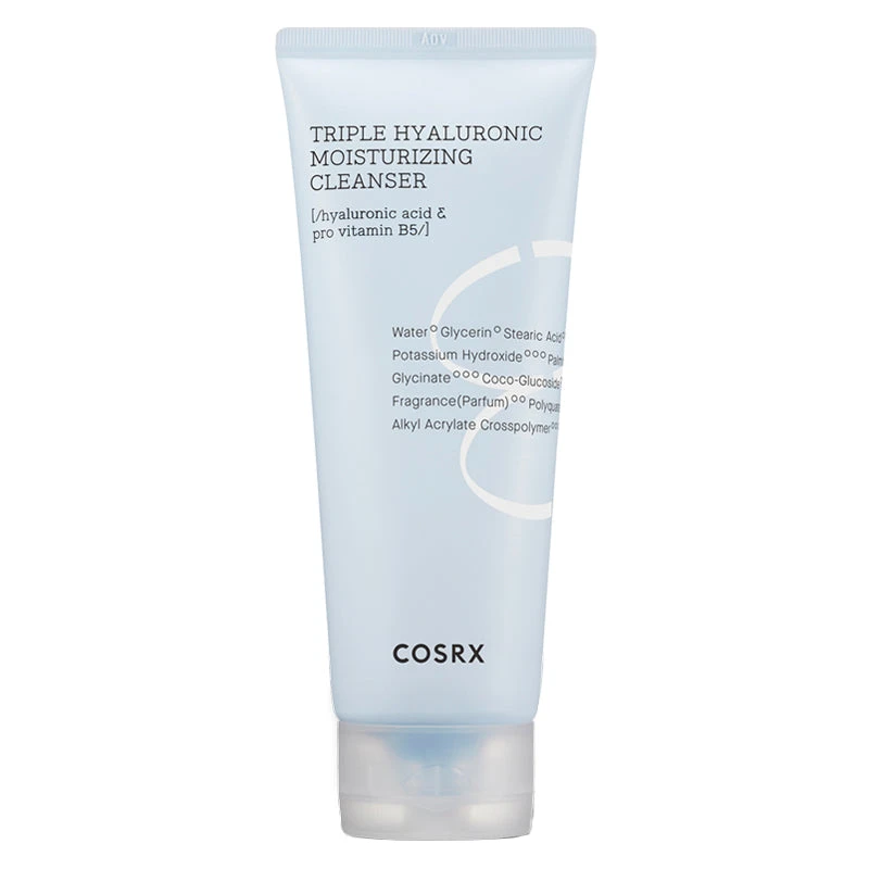 The CosRX Hydrium Triple Hyaluronic Moisture Cleanser is a gentle cleanser that lathers into a rich foam to remove dirt and impurities from the skin. Enriched with the hyaluronic acid and vitamin B5 this cleanser helps to lock in moisture and plumps the skin while leaving it clean and refreshed.