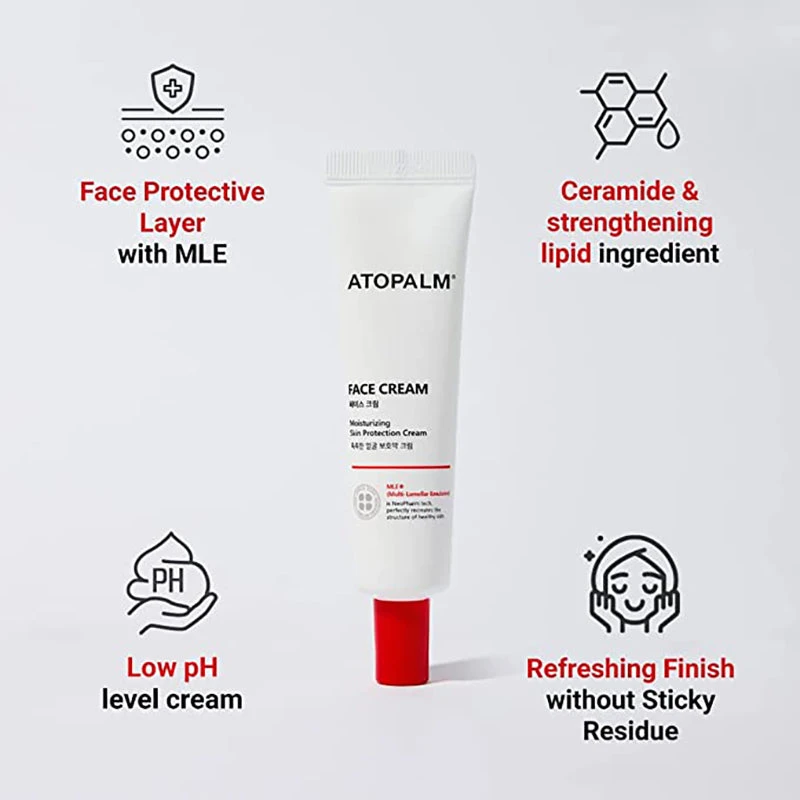 The ATOPALM Face Cream delivers intensive hydration and protection, replenishing moisture levels with five essential amino acids while reinforcing the skin barrier against external irritants. Formulated with ATOPALM’s patented MLE technology, it strengthens the skin’s moisture-retention abilities, making it ideal for dry and sensitive skin.