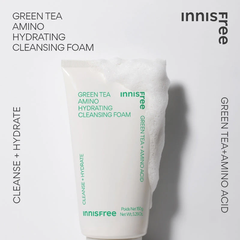 The Innisfree Green Tea Amino Hydrating Cleansing Foam is a hydrating face wash that gently removes dirt and impurities without leaving your skin feeling dry or stripped. Infused with Jeju Green Tea and a triple Amino Acid Complex, it cleanses while keeping your skin soft and moisturized.