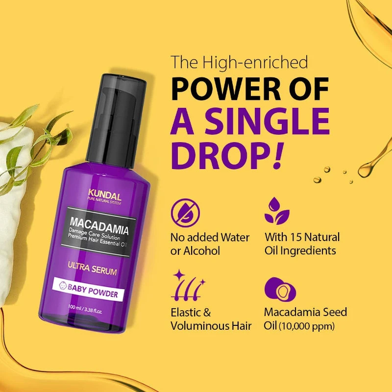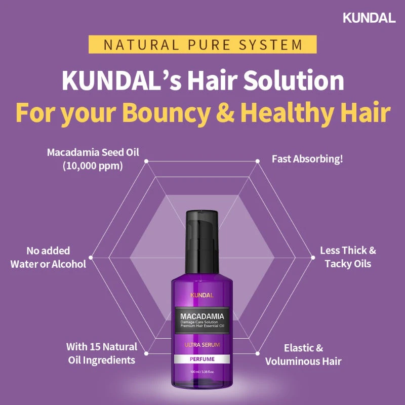 The KUNDAL Macadamia Ultra Hair SerumΒ is a pure highly concentrated serum that does not contain water or alcohol. KUNDAL’s Macadamia Ultra Hair Serum contains 10,000 ppm of macadamia and 15 natural plant-derived oils (Argan Oil, Macadamia Seed Oil, Avocado Oil, Coconut Oil and more!)Β to moisturize and nourish dull, brittle, and dry hair.Β