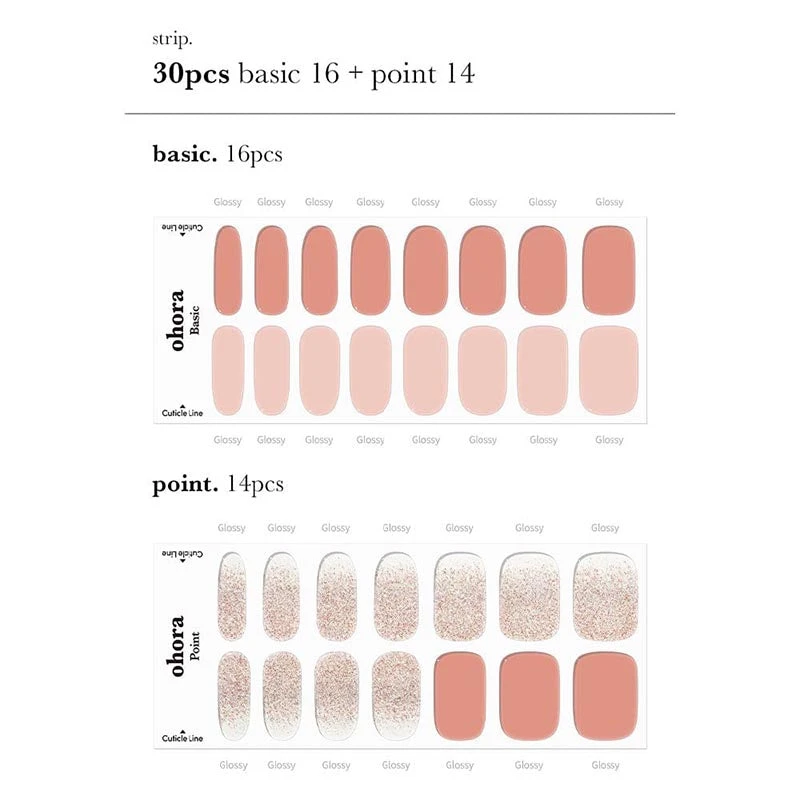 - 30 Nail strips (16 basics & 14 accents) in 15 different sizes